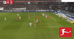 90+2’ 格納布里分球,凱恩晃開防守球員低射破門,拜仁4比0領先。