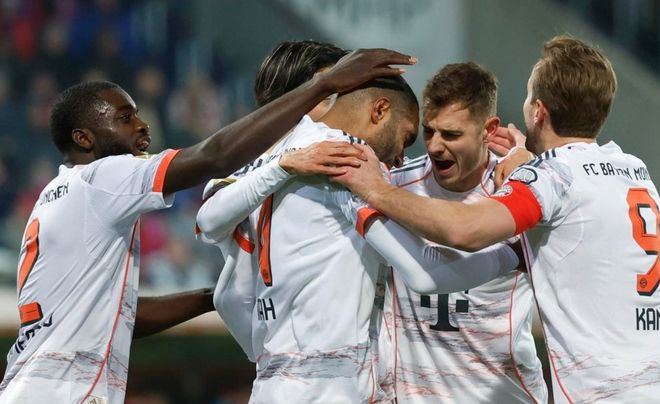 比賽第12分鐘,約納坦-塔在門前頭球攻門,頂?shù)锰?。門將站在原地就把球擋出。3分鐘后,拜仁進球了!依靠角球機會,斯塔尼希奇門前頭球補射破門。拜仁開局很順利。第32分鐘,拜仁再次進球。伊藤洋輝的射門被擋了一下,皮球飛到門前。奧利塞輕松把球打進空門。5分鐘后,凱恩凌空抽射,門將把球摘下。半場結束,拜仁2-0領先海登海姆。